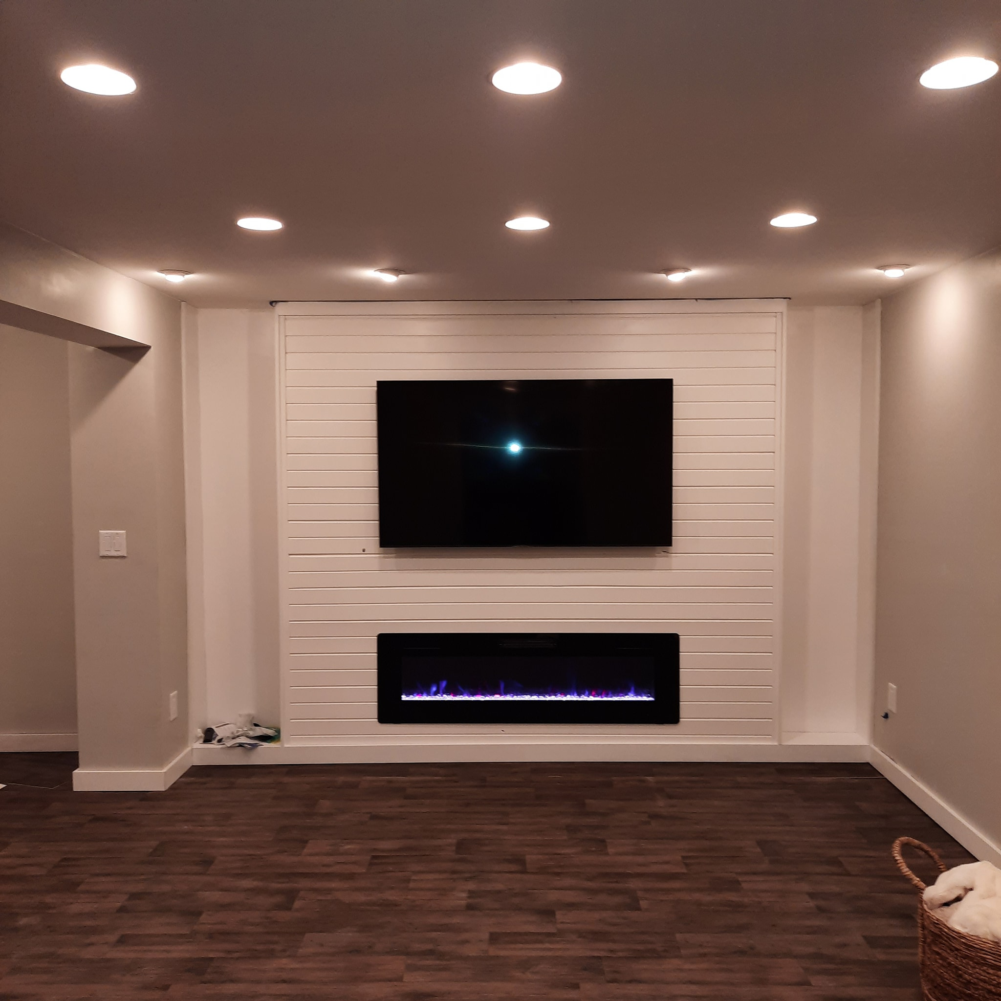 Donna..... Right Hand Man Services finished my basement. Built walls, put up dry wall, painted them. Installed doors including barn doors and a pocket door. Installed flooring throughout--mostly the vinyl LifeProof and adhesive flooring in laundry and furnace rooms. Spray painted the ceilings black since we have only 8 ft ceilings and didn't want to drywall. Richie did build the bathroom walls and ceiling in there. Framed all the windows and did the electrical and installed canned lighting. Very happy with the work! He charged what was estimated and accurate timing to completion. Very skilled at what he does!